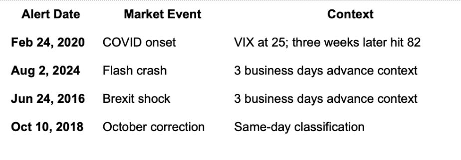 This distinction matters: Different regime states for different kinds of stress. Not everything that moves fast is systemic. The classifier knew the difference.