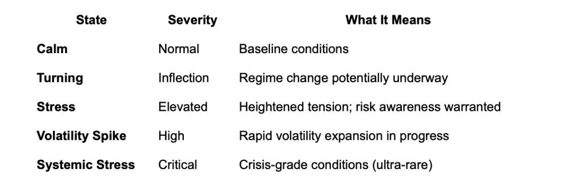 Disclaimer: This article describes analytical frameworks for informational and research purposes only. We do not provide investment, financial, or trading advice. State classifications describe current conditions based on quantitative rules and historical patterns, not predictions. Past performance does not guarantee future results.